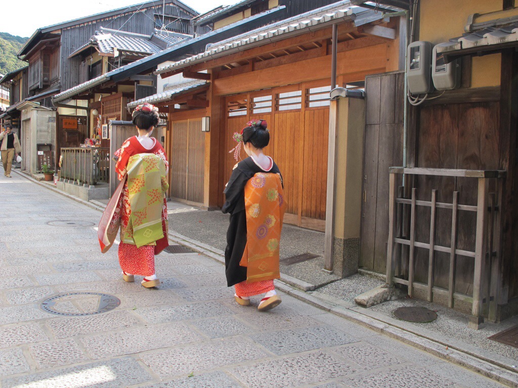 Exiting from Kiyomizu-dera to Chion-in, Sannen-zaki and Ninen-zaki are two very well-preserved and atmospheric streets. In addition to Yasaka Shrine, you will probably encounter a priest asking for alms and a geisha (or two), as well as many groups of very well-behaved students on field trips.