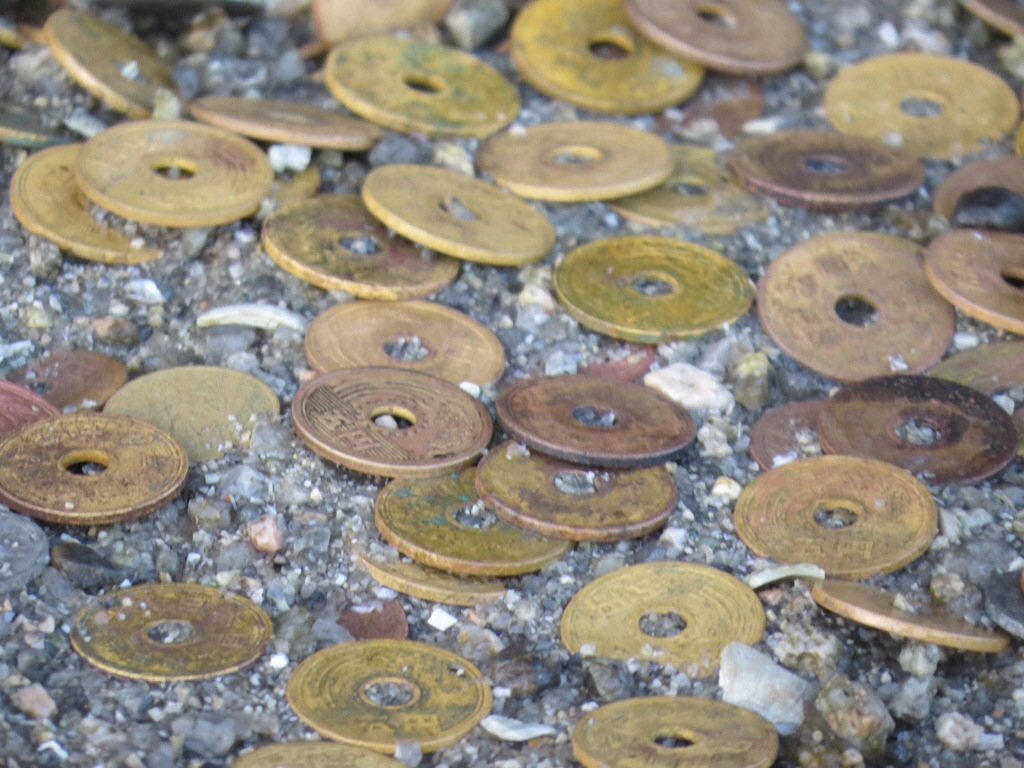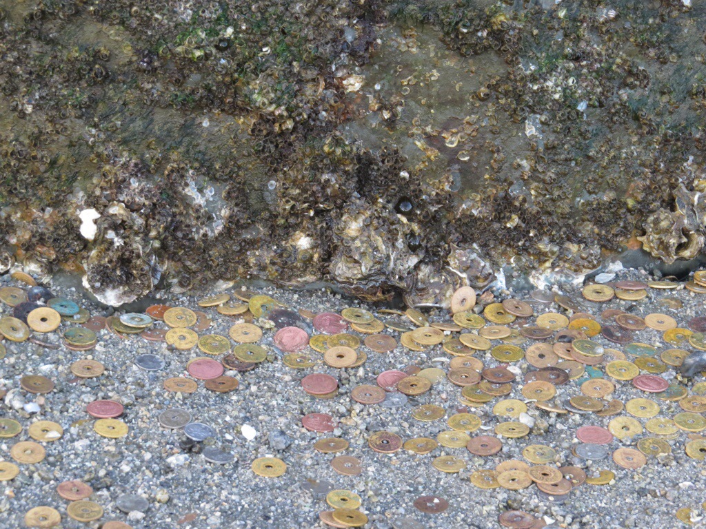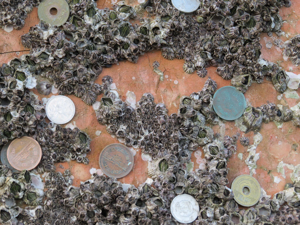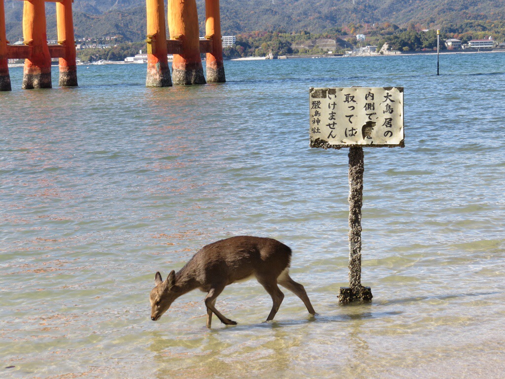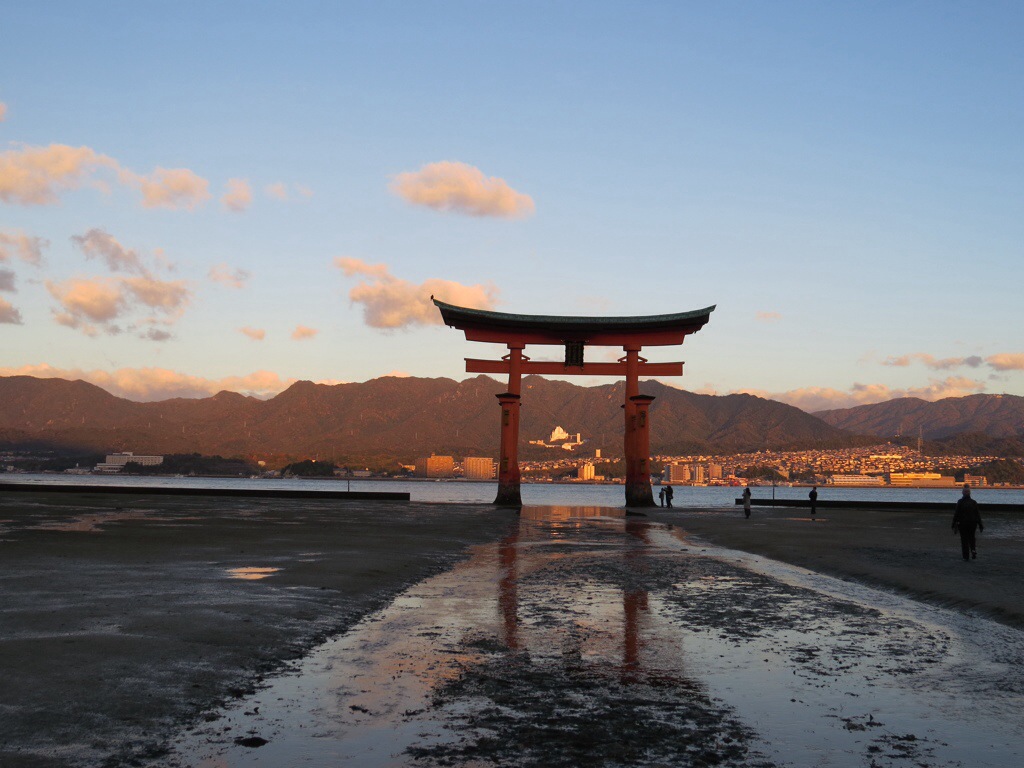 Getting out at sunrise rewards the early bird with uninterrupted views of the magnificent orange torii at low tide when it can be approached on foot. It is common practice for visitors to make wishes after placing coins in the cracks of the gate legs. Locals gather shellfish, which they add to soup.