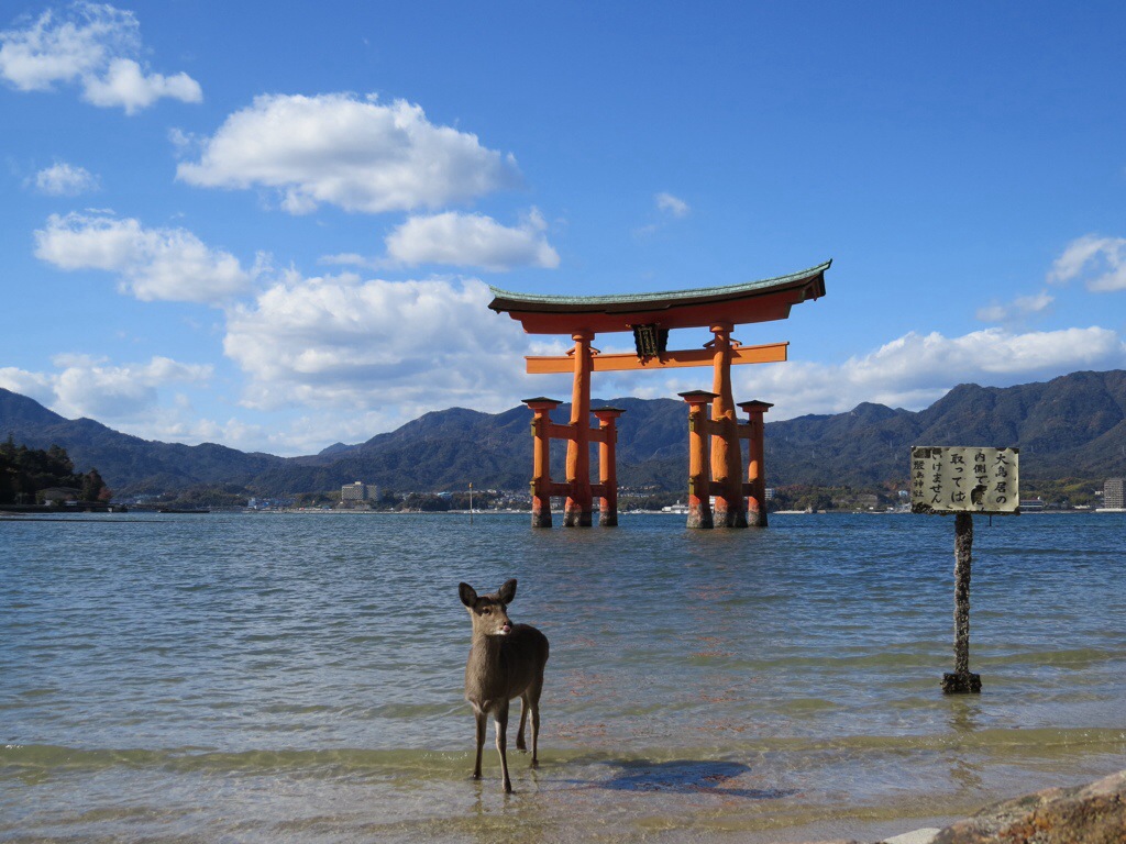 The view of the gate in front of the island’s Mount Misen is classified as one of the Three Views of Japan. A gate has been in place since 1168 but the current gate, built of camphor wood to resist decay, dates back only to 1875.