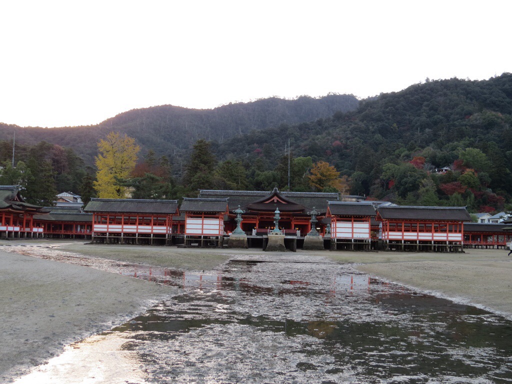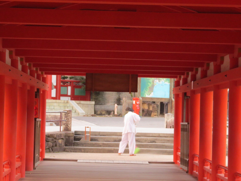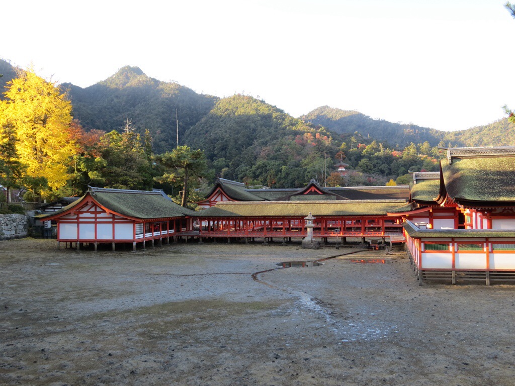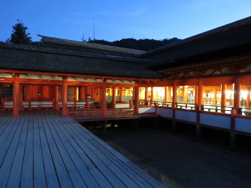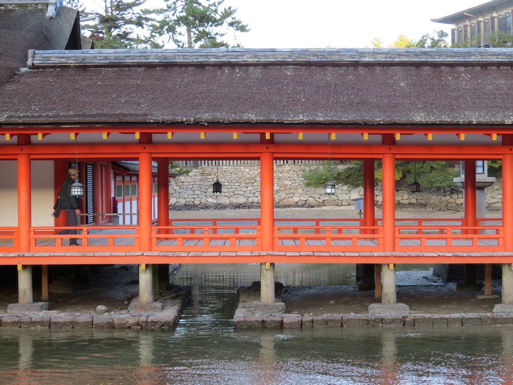The island has been considered sacred throughout much of its history. To maintain its purity, commoners were forbidden to set foot on the sacred island. In order to allow pilgrims to approach, the shrine was built like a pier over the water, so that it appears to float. Commoners had to steer their boats through the torii before approaching the shrine.